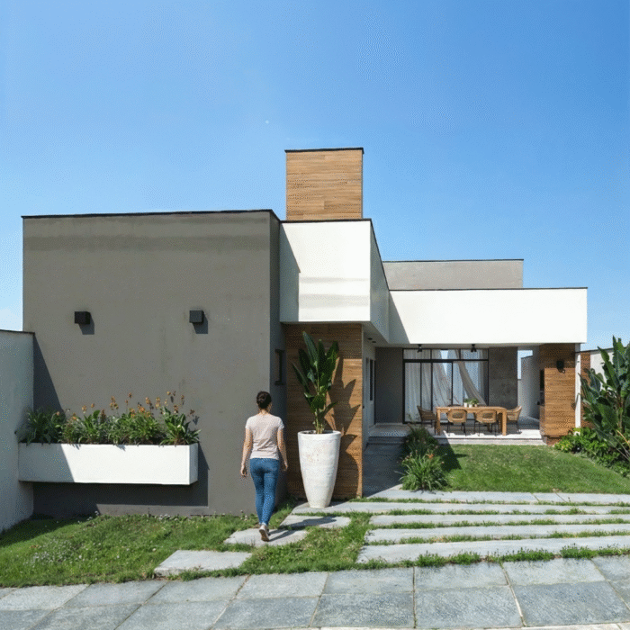 Eles já haviam passado por outra experiência com arquitetura e não se reconheceram no projeto. Quando começamos esse estudo, o objetivo foi claro: criar uma casa que fizesse sentido, que emocionasse e que fosse possível de construir…. Sem excessos, sem imposições.