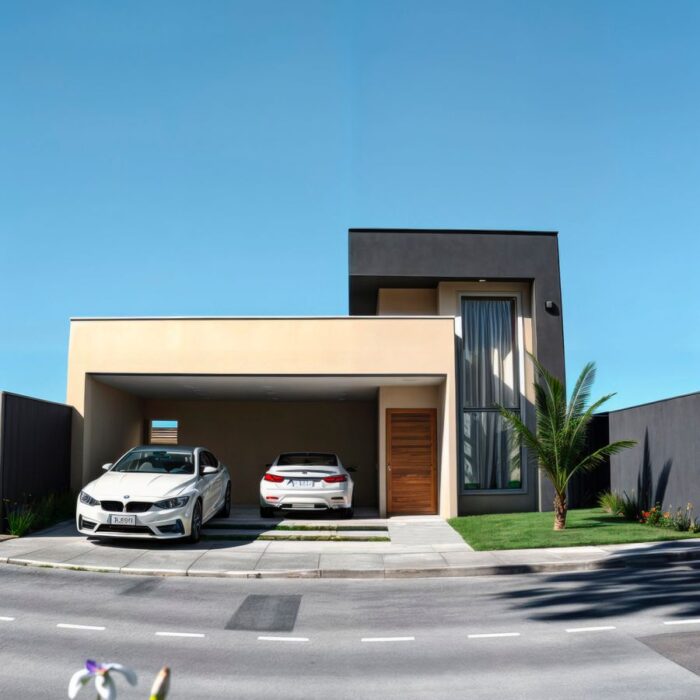 Fachada minimalista com design contemporâneo e elegância nas linhas retas.